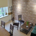 Przytulna sala w stylu loft wyposażona w wygodną kanapę oraz stół konferencyjny dla 8 osób. Miejsce rekomendowane do spotkań mniej formalnych lub wymagających przyjaznej atmosfery jak np. gabinet psychologa, coacha, korepetycje lub spotkanie z klientem.