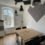 Kompaktowa, przytulna sala, gdzie szczególny nacisk położyliśmy na wygłuszenie i akustykę tego pomieszczenia. Dzięki temu sala idealnie sprawdzi się do nagrywania vlogów, podcastów lub spotkań w formie zdalnej.